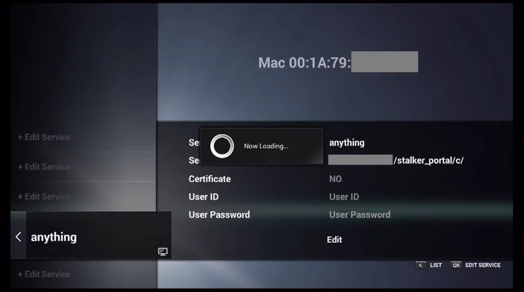 Connecting to IPTV Server (with your registered data) in progress.